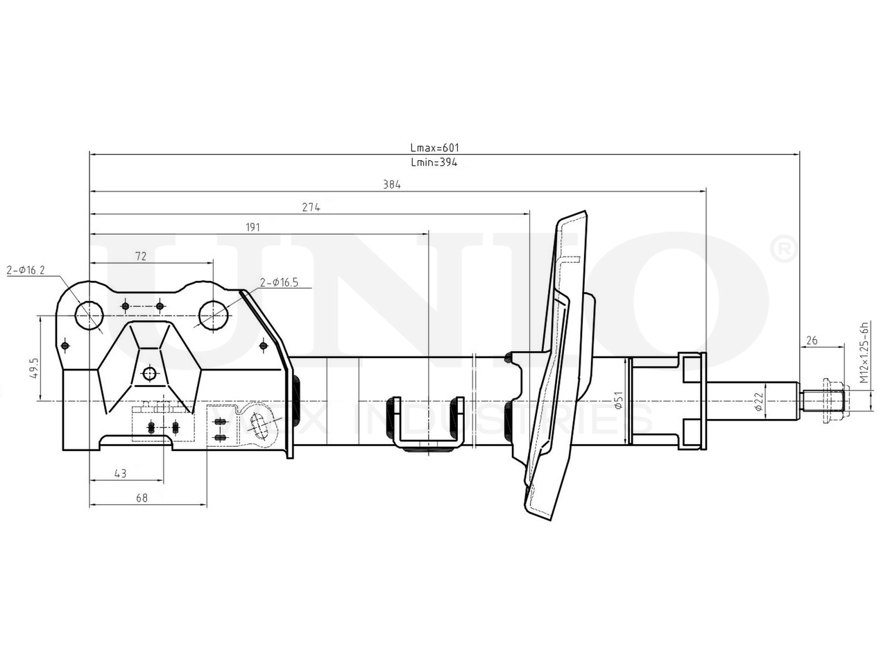Амортизатор газовый передней подвески левый