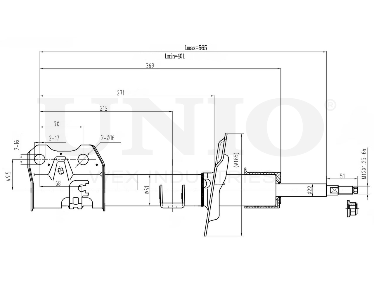 Амортизатор газовый передней подвески левый