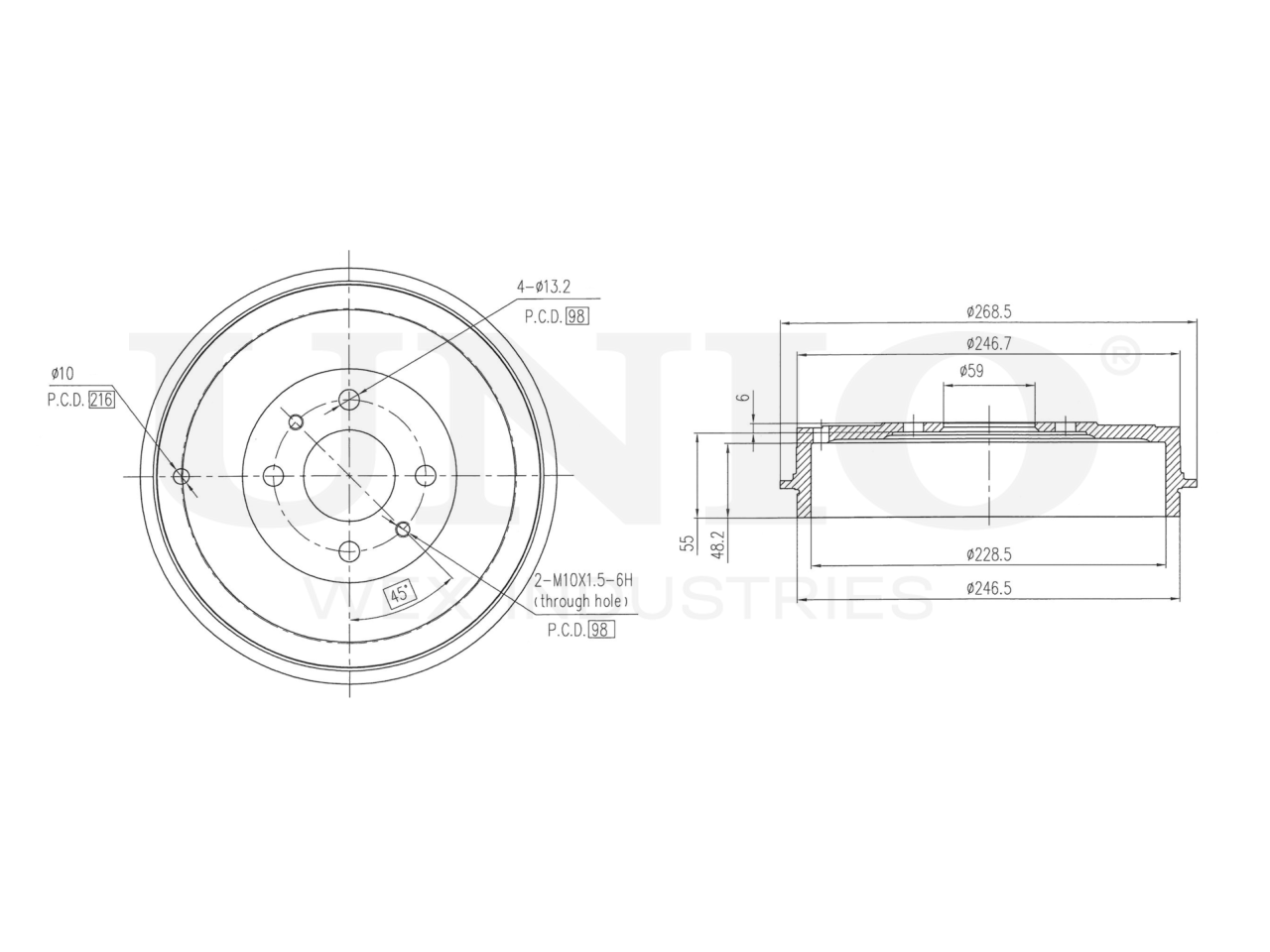 Артикул товара - BRD-10018, Сторона установки:Задний мост, Наружный диаметр тормозного барабана [мм]:268.5, Макс. размер расточки тормозного барабана [мм]:230, Внутренний диаметр тормозного барабана [мм]:228.5, Общ. высота торм. барабана [мм]:61, Диаметр центрирования [мм]:59, Диаметр расположения крепёжных отверстий ступицы [мм]:98, Количество отверстий:4+2+1, Количество:1, EAN:4657818491542, EAN:4657818491542, Тип упаковки:коробка, Длина упаковки [мм]:320, Ширина упаковки [мм]:305, Высота упаковки [мм]:138, Вес нетто [кг]:5,49, Вес брутто [кг]:6,08