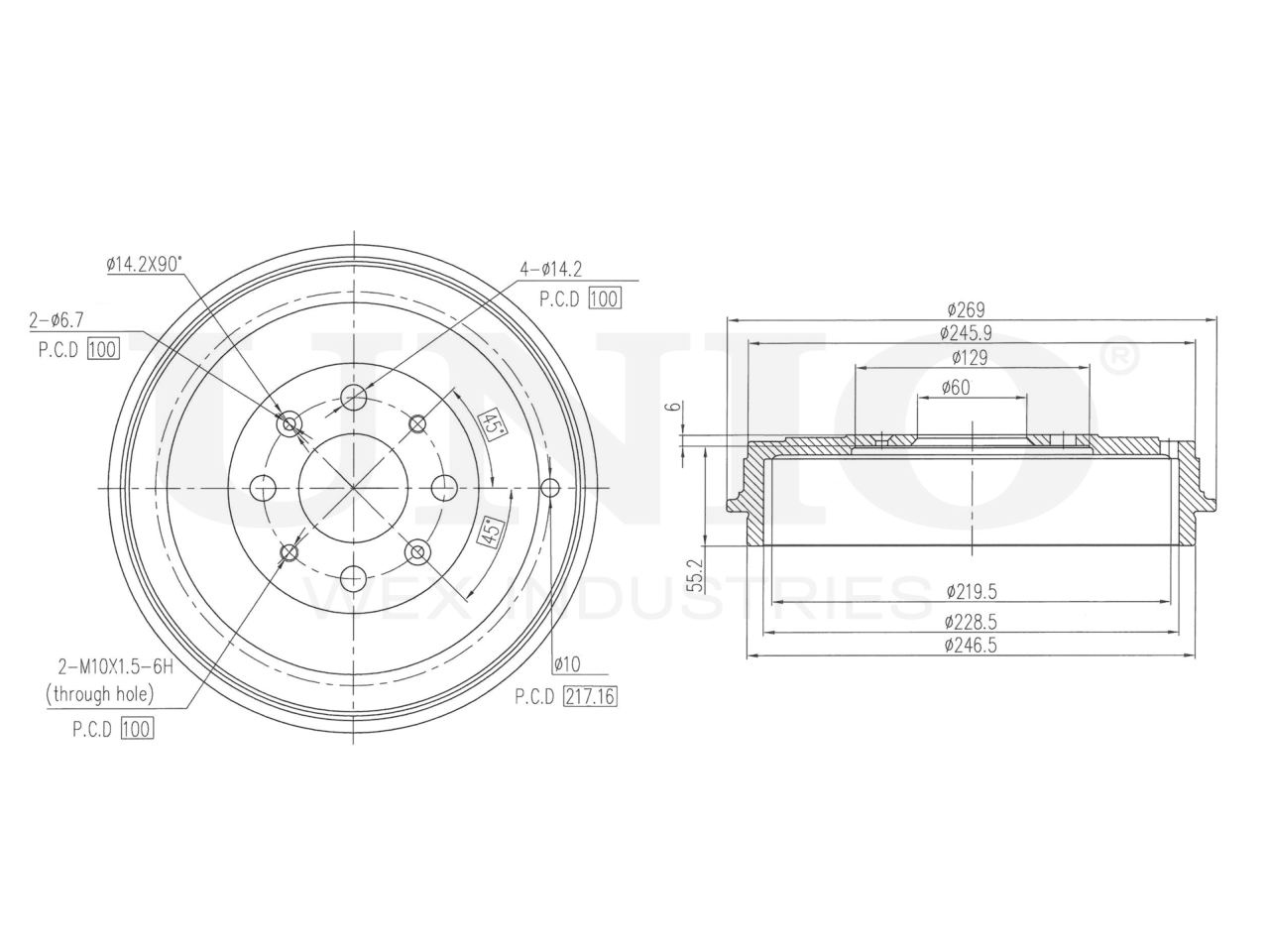 Артикул товара - BRD-10027, Сторона установки:Задний мост, Наружный диаметр тормозного барабана [мм]:269, Макс. размер расточки тормозного барабана [мм]:230, Внутренний диаметр тормозного барабана [мм]:228.5, Общ. высота торм. барабана [мм]:61.2, Диаметр центрирования [мм]:60, Диаметр расположения крепёжных отверстий ступицы [мм]:100, Количество отверстий:4+2+2+1, Количество:1, EAN:4657818491627, EAN:4657818491627, Тип упаковки:коробка, Длина упаковки [мм]:320, Ширина упаковки [мм]:305, Высота упаковки [мм]:138, Вес нетто [кг]:5,71, Вес брутто [кг]:6,3