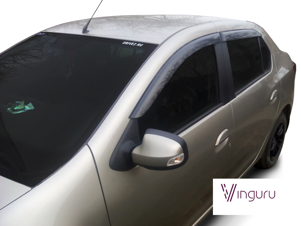 Дефлекторы окон Vinguru RENAULT Logan II 2012-2018, 2018- /сед/накладные/скотч/к-т 4 шт./литьевой поликарбонат / Рено Логан