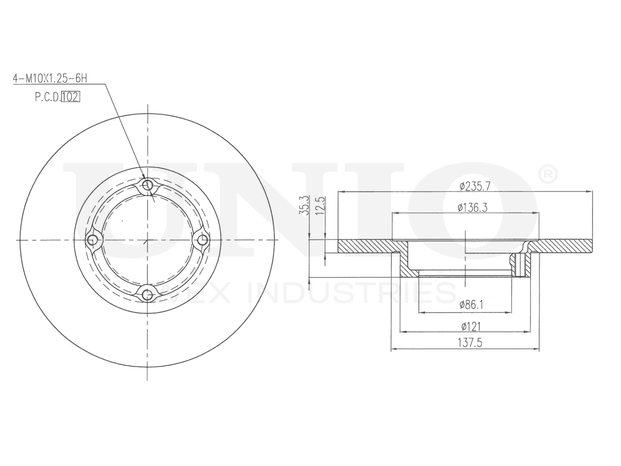 Артикул товара - BRD-20063, Сторона установки:Передний мост, Тип тормозного диска:Полный, Наружный диаметр [мм]:235.7, Высота [мм]:35.3, Минимальная толщина [мм]:9.7, Толщина тормозного диска [мм]:12.5, Диаметр центрирования [мм]:86.1, Диаметр расположения крепёжных отверстий ступицы [мм]:102, Количество отверстий:4, Количество:1, EAN:4657818491948, EAN:4657818491948, Тип упаковки:коробка, Длина упаковки [мм]:270, Ширина упаковки [мм]:255, Высота упаковки [мм]:78, Вес нетто [кг]:3,62, Вес брутто [кг]:4,08