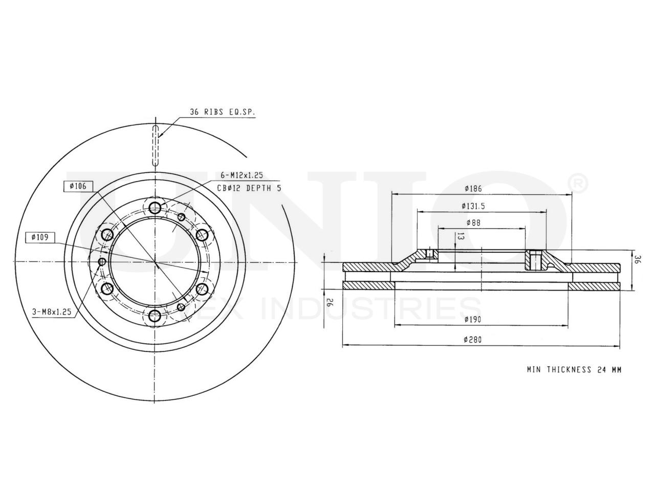 Артикул товара - BRD-20147, Сторона установки:Передний мост, Тип тормозного диска:Вентилируемый, Наружный диаметр [мм]:280, Высота [мм]:36, Минимальная толщина [мм]:24, Толщина тормозного диска [мм]:26, Диаметр центрирования [мм]:88, Диаметр расположения крепёжных отверстий ступицы [мм]:109, Количество отверстий:6+3, Количество:1, EAN:4657817761011, EAN:4657817761011, Тип упаковки:коробка, Длина упаковки [мм]:310, Ширина упаковки [мм]:300, Высота упаковки [мм]:50, Вес нетто [кг]:6,95, Вес брутто [кг]:7,13