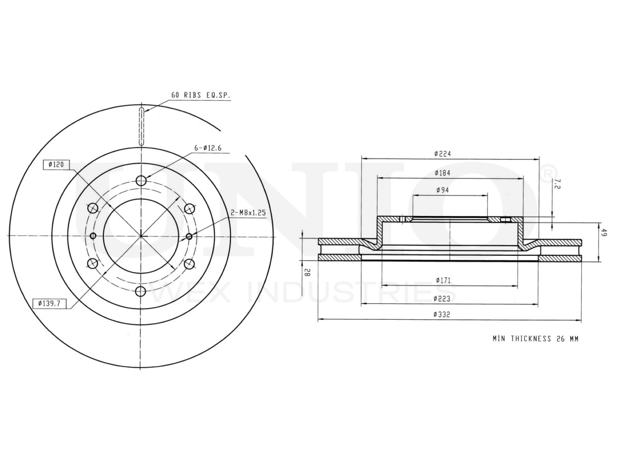 Артикул товара - BRD-20304, Сторона установки:Передний мост, Тип тормозного диска:Вентилируемый, Наружный диаметр [мм]:332, Высота [мм]:56.2, Минимальная толщина [мм]:26, Толщина тормозного диска [мм]:28, Диаметр центрирования [мм]:94, Диаметр расположения крепёжных отверстий ступицы [мм]:139.7, Количество отверстий:6+2, Количество:1, EAN:4657817762346, EAN:4657817762346, Тип упаковки:коробка, Длина упаковки [мм]:370, Ширина упаковки [мм]:360, Высота упаковки [мм]:70, Вес нетто [кг]:9,4, Вес брутто [кг]:9,7