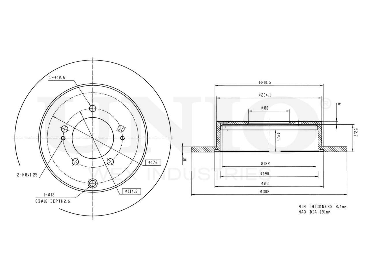 Артикул товара - BRD-20101, Сторона установки:Задний мост, Тип тормозного диска:Полный, Наружный диаметр [мм]:302, Высота [мм]:58.7, Минимальная толщина [мм]:8.4, Толщина тормозного диска [мм]:10, Диаметр центрирования [мм]:80, Диаметр расположения крепёжных отверстий ступицы [мм]:114.3, Количество отверстий:5+2, Количество:1, EAN:4657817760571, EAN:4657817760571, Тип упаковки:коробка, Длина упаковки [мм]:350, Ширина упаковки [мм]:340, Высота упаковки [мм]:70, Вес нетто [кг]:5,55, Вес брутто [кг]:5,82