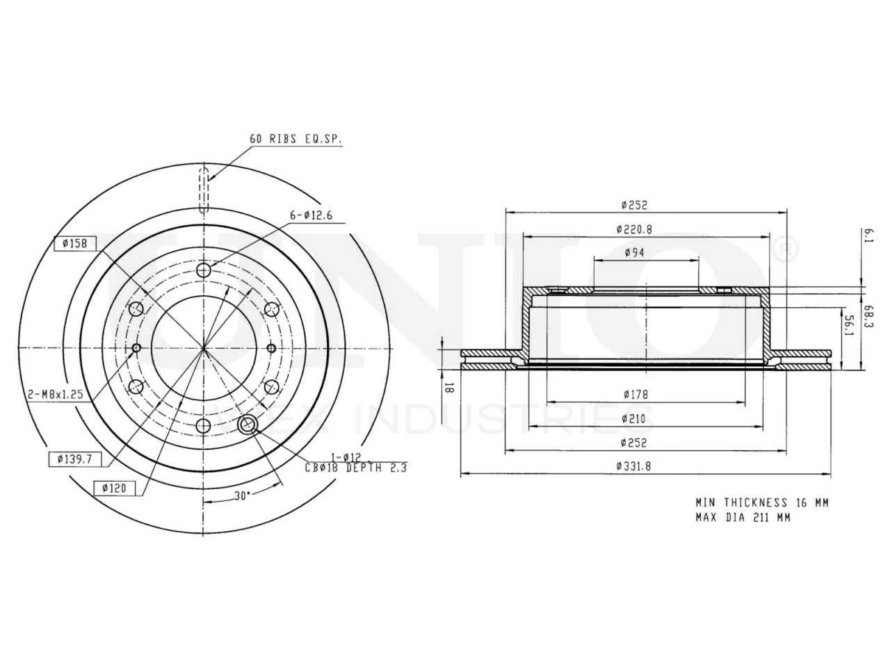 Артикул товара - BRD-20293, Сторона установки:Задний мост, Тип тормозного диска:Вентилируемый, Наружный диаметр [мм]:331.8, Высота [мм]:74.4, Минимальная толщина [мм]:16, Толщина тормозного диска [мм]:18, Диаметр центрирования [мм]:94, Диаметр расположения крепёжных отверстий ступицы [мм]:139.7, Количество отверстий:6+2+1, Количество:1, EAN:4657817762254, EAN:4657817762254, Тип упаковки:коробка, Длина упаковки [мм]:370, Ширина упаковки [мм]:360, Высота упаковки [мм]:90, Вес нетто [кг]:7,78, Вес брутто [кг]:8,13