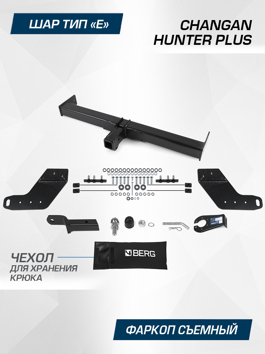 Фаркоп Berg для Changan Hunter Plus 2023-н.в., шар E, 3500/100 кг, F.6116.002, Масса прицепа (макс. кг): 3500, Вертикальная нагрузка на крюк (макс. кг): 100, Тип шара: E, Вырез в бампере: не нужен, Паспорт, инструкция и сертификат в комплекте. Внимание: БЕЗ электрики в комплекте!