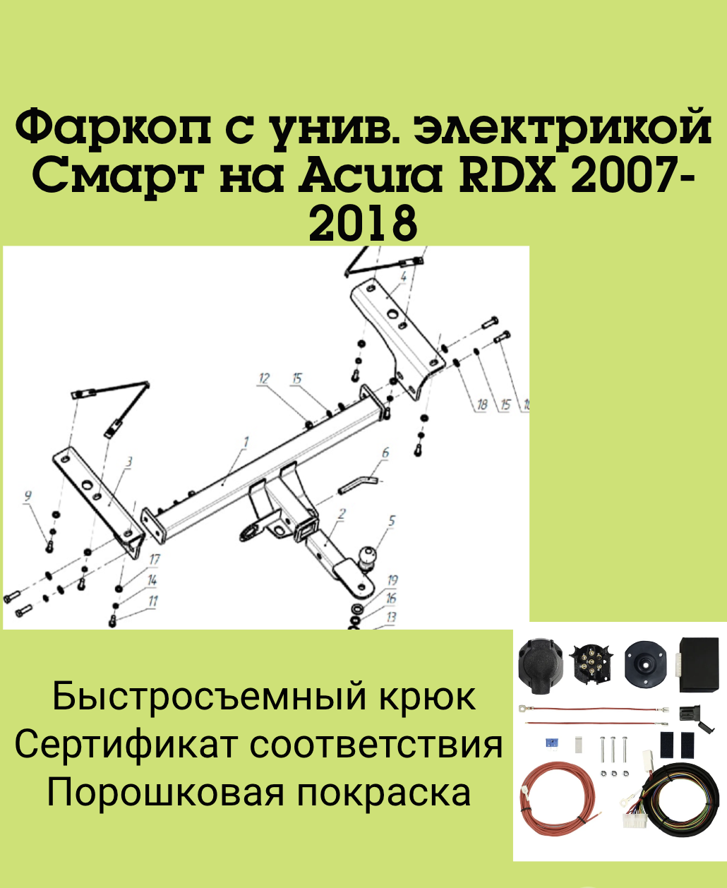 Тип шара:Легкосъёмный "американский" квадрат 50х50.; Вертикальная нагрузка на шар, кг:120.; Максимальная масса прицепа, кг:3000.; Резать бампер:Не надо.;