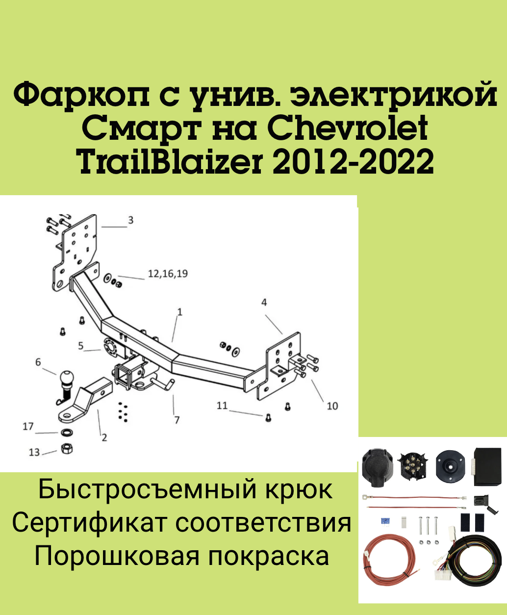 Фаркоп на Chevrolet TrailBlaizer 2012-2022 без подрезки бампера.