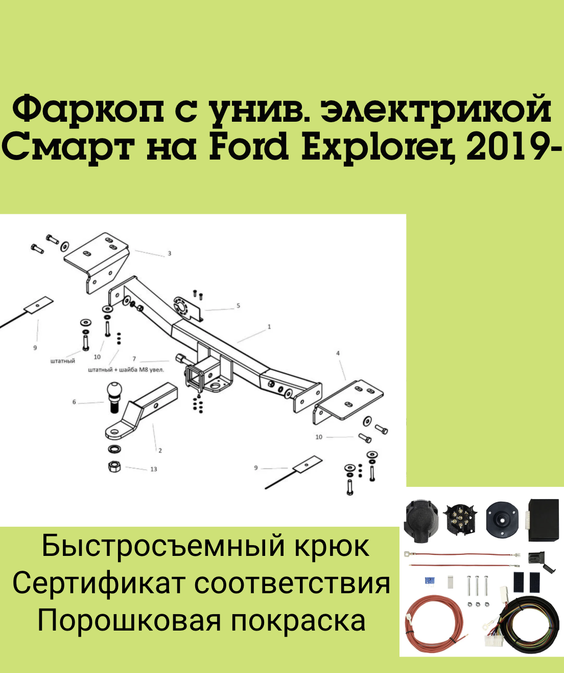 Фаркоп на Ford Explorer, 2019- без подрезки бампера.