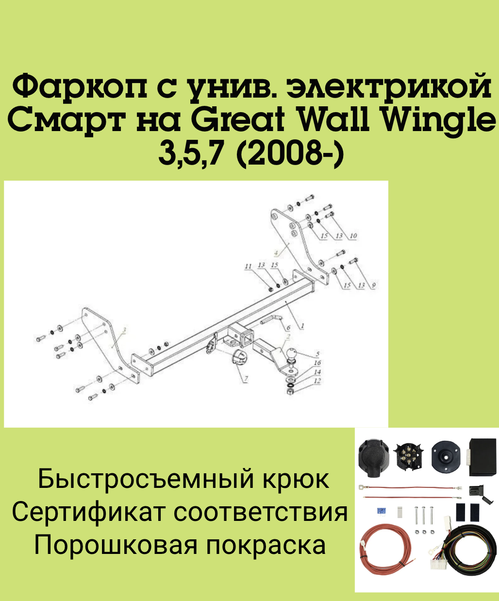 Фаркоп с унив. электрикой Смарт на Great Wall Wingle 3,5,7 (2008-) FA 0646-E Бизон