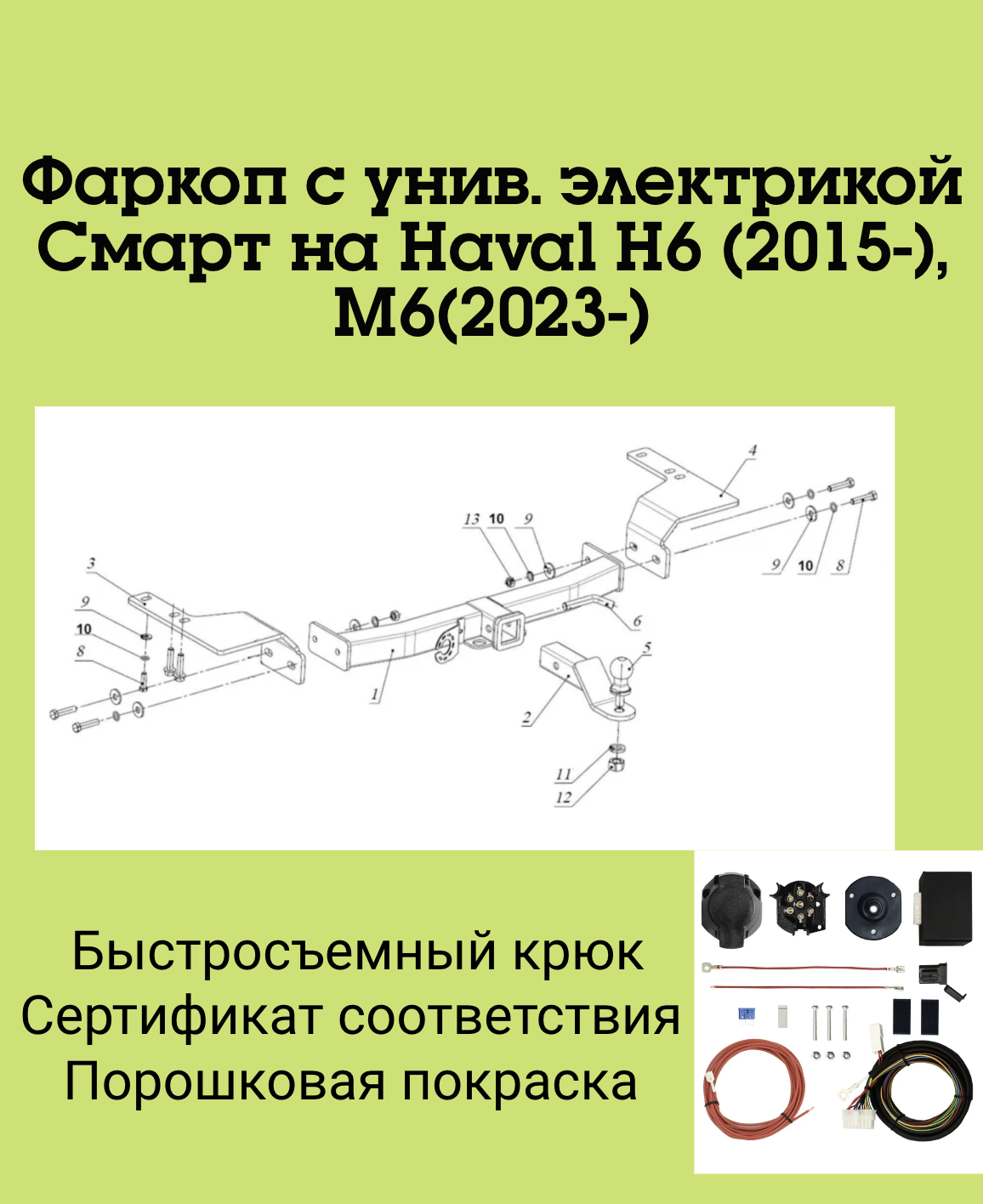 Тип шара:Легкосъёмный "американский" квадрат 50х50.; Вертикальная нагрузка на шар, кг:120.; Максимальная масса прицепа, кг:1500.; Резать бампер:Не надо.;