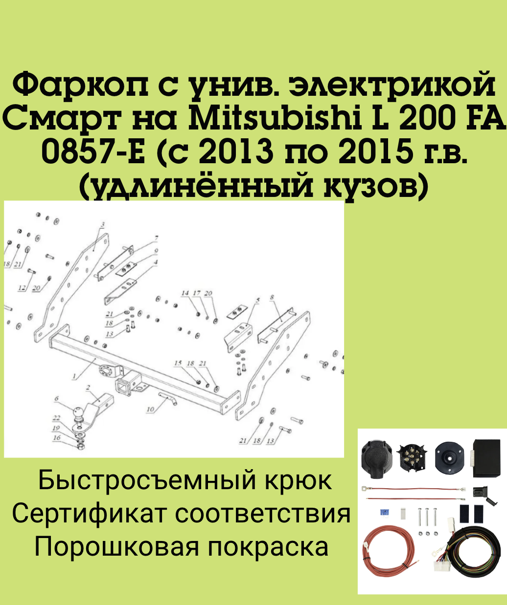 Фаркоп с унив. электрикой Смарт на Mitsubishi L 200 FA 0857-E (с 2013 по 2015 г.в.(удлинённый кузов)) Бизон