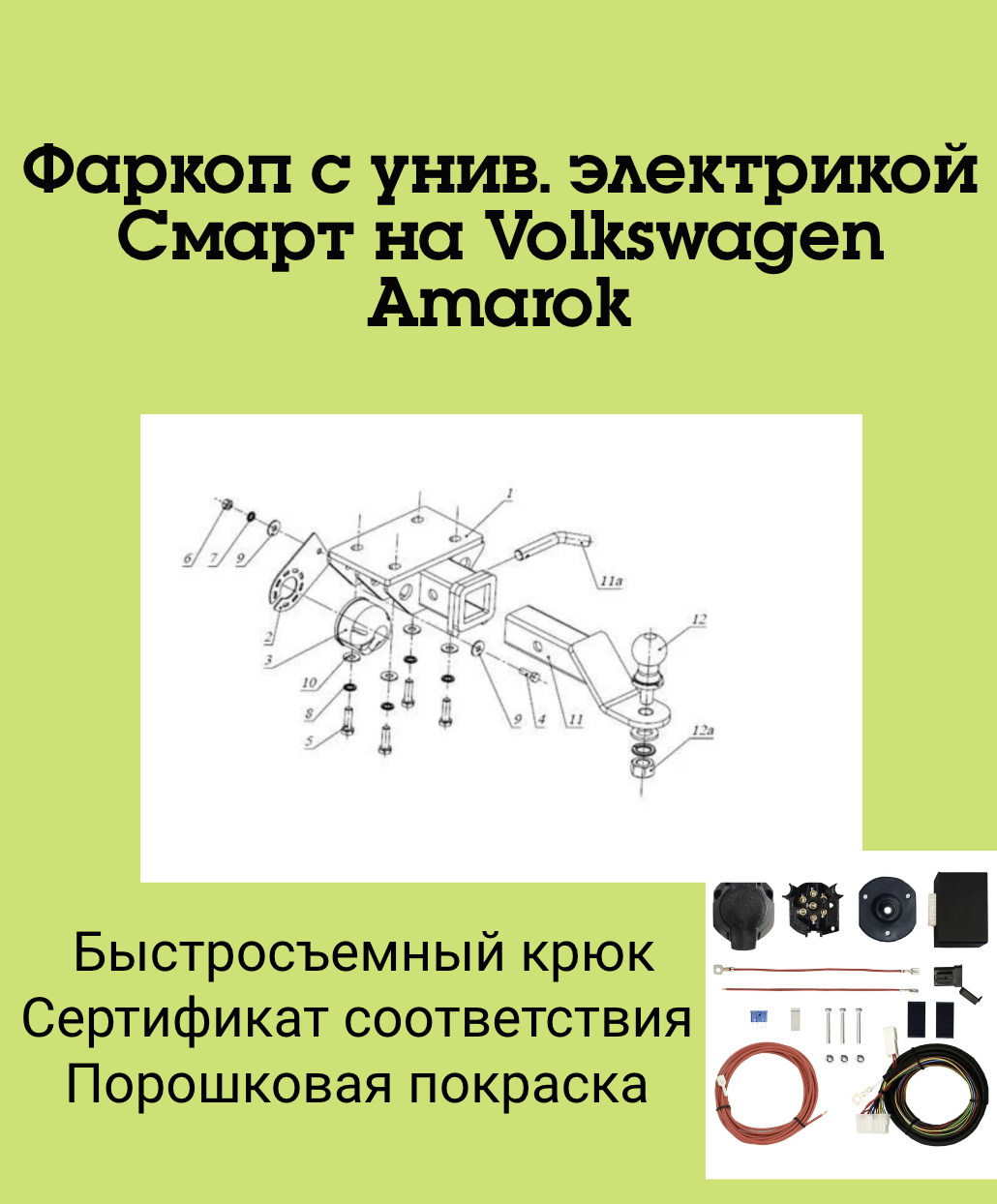 Тип шара:Легкосъёмный "американский" квадрат 50х50.; Вертикальная нагрузка на шар, кг:120.; Максимальная масса прицепа, кг:3200.; Резать бампер:Не надо.;