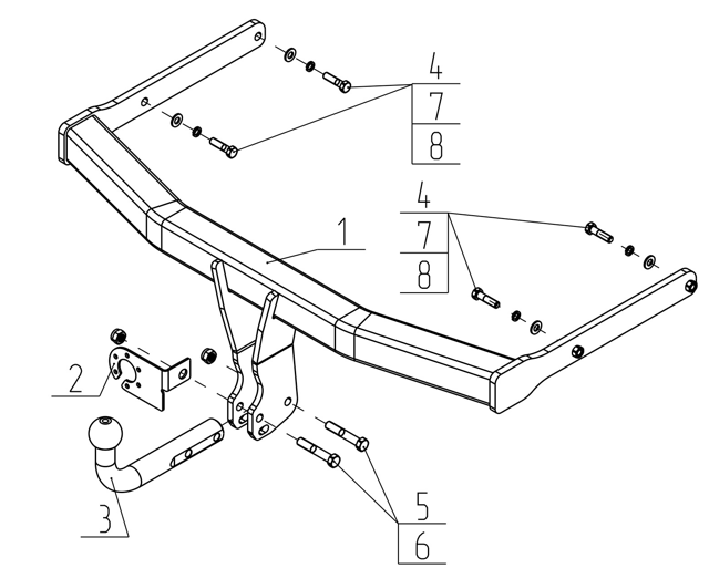 Тип шара: Условно съемный шар (на двух болтах).; Вертикальная нагрузка на шар, кг: 100.; Максимальная масса прицепа, кг: 2400.; Резать бампер: Вырез в бампере не виден.; Паспорт и сертификат в комплекте. ВНИМАНИЕ! Без электрики.