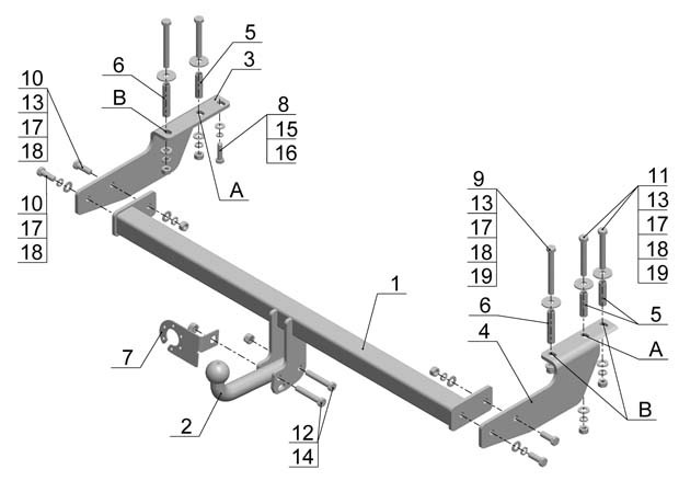Тип шара: Условно съемный шар (на двух болтах).; Вертикальная нагрузка на шар, кг: 75.; Максимальная масса прицепа, кг: 1000.; Резать бампер: Не надо.; Паспорт и сертификат в комплекте. ВНИМАНИЕ! Без электрики.