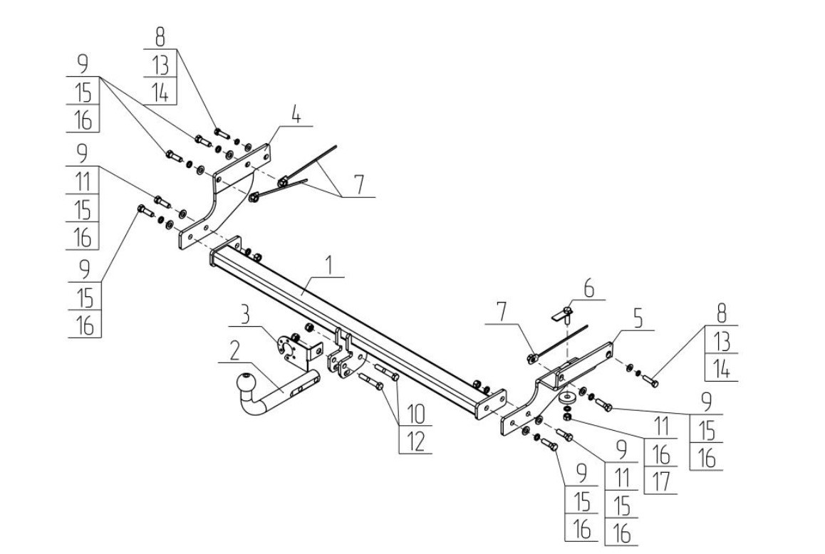 Тип шара: Условно съемный шар (на двух болтах).; Вертикальная нагрузка на шар, кг: 75.; Максимальная масса прицепа, кг: 1800.; Резать бампер: Не надо.; Паспорт и сертификат в комплекте. ВНИМАНИЕ! Без электрики.