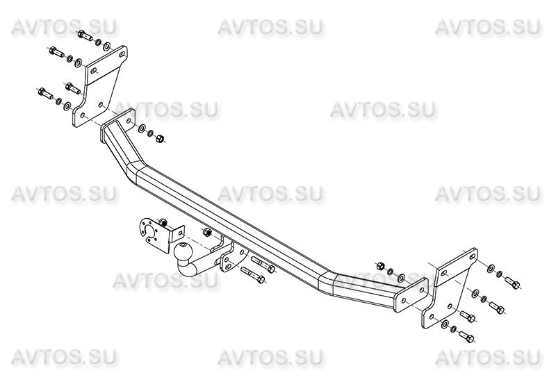 Тип шара: Условно съемный шар (на двух болтах).; Вертикальная нагрузка на шар, кг: 75.; Максимальная масса прицепа, кг: 1500.; Резать бампер: Вырез в бампере не виден.; Паспорт и сертификат в комплекте. ВНИМАНИЕ! Без электрики.