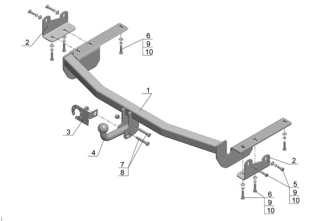 Тип шара: Условно съемный шар (на двух болтах).; Вертикальная нагрузка на шар, кг: 75.; Максимальная масса прицепа, кг: 1500.; Резать бампер: Надо.; Паспорт и сертификат в комплекте. ВНИМАНИЕ! Без электрики.