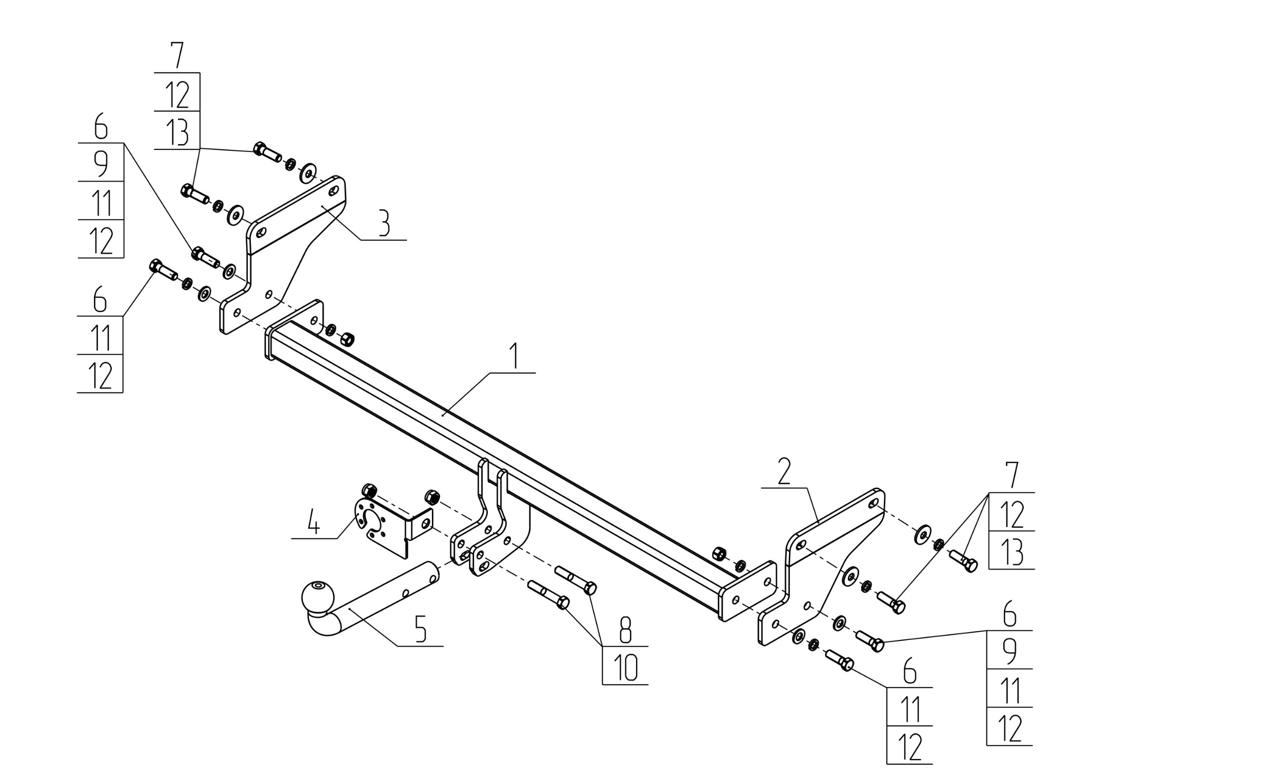 Тип шара: Условно съемный шар (на двух болтах).; Вертикальная нагрузка на шар, кг: 75.; Максимальная масса прицепа, кг: 1250.; Резать бампер: Вырез в бампере не виден.; Паспорт и сертификат в комплекте. ВНИМАНИЕ! Без электрики.