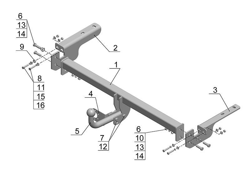 Тип шара: Условно съемный шар (на двух болтах).; Вертикальная нагрузка на шар, кг: 50.; Максимальная масса прицепа, кг: 1000.; Резать бампер: Не надо.; Паспорт и сертификат в комплекте. ВНИМАНИЕ! Без электрики.