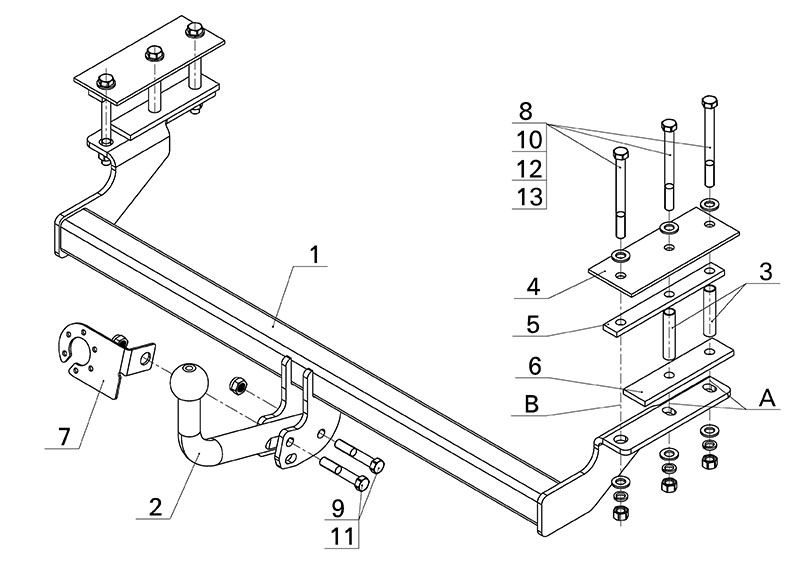 Тип шара: Условно съемный шар (на двух болтах).; Вертикальная нагрузка на шар, кг: 75.; Максимальная масса прицепа, кг: 1100.; Резать бампер: Не надо.; Паспорт и сертификат в комплекте. ВНИМАНИЕ! Без электрики.
