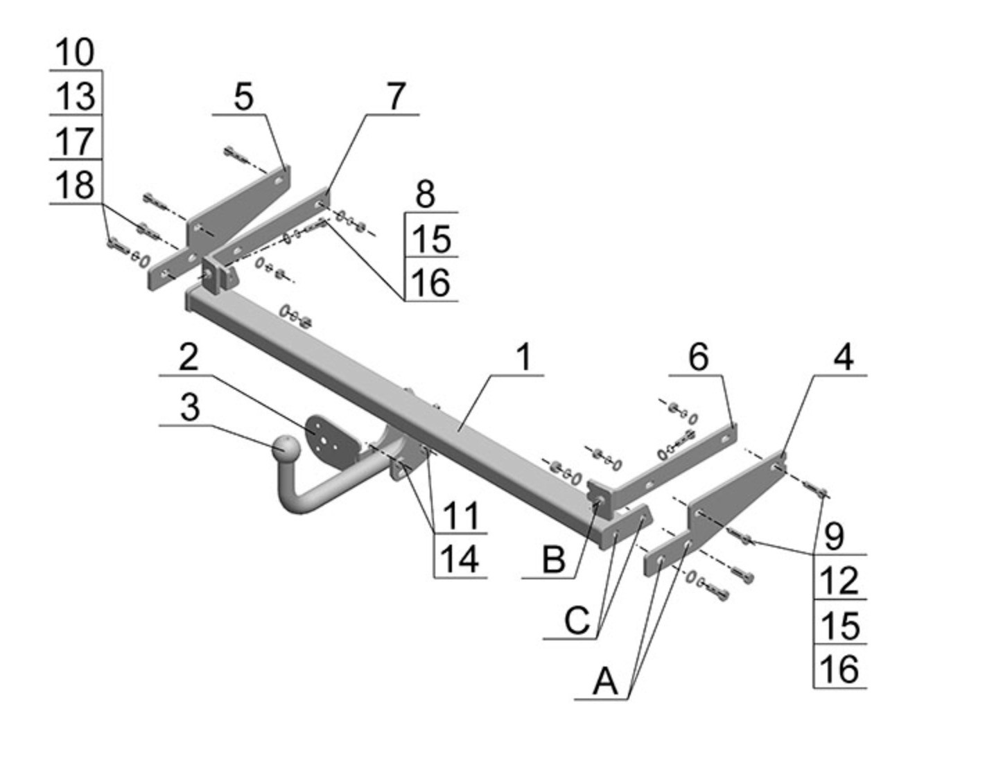 Тип шара: Условно съемный шар (на двух болтах).; Вертикальная нагрузка на шар, кг: 75.; Максимальная масса прицепа, кг: 1150.; Резать бампер: Не надо.; Паспорт и сертификат в комплекте. ВНИМАНИЕ! Без электрики.