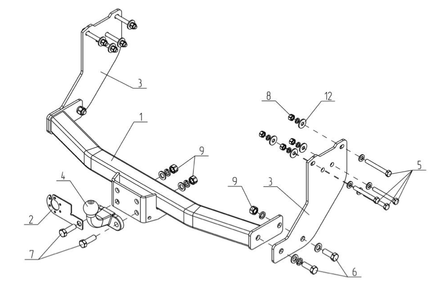 Фаркоп (без электрики), крепеж, инструкция и сертификат соответвия.