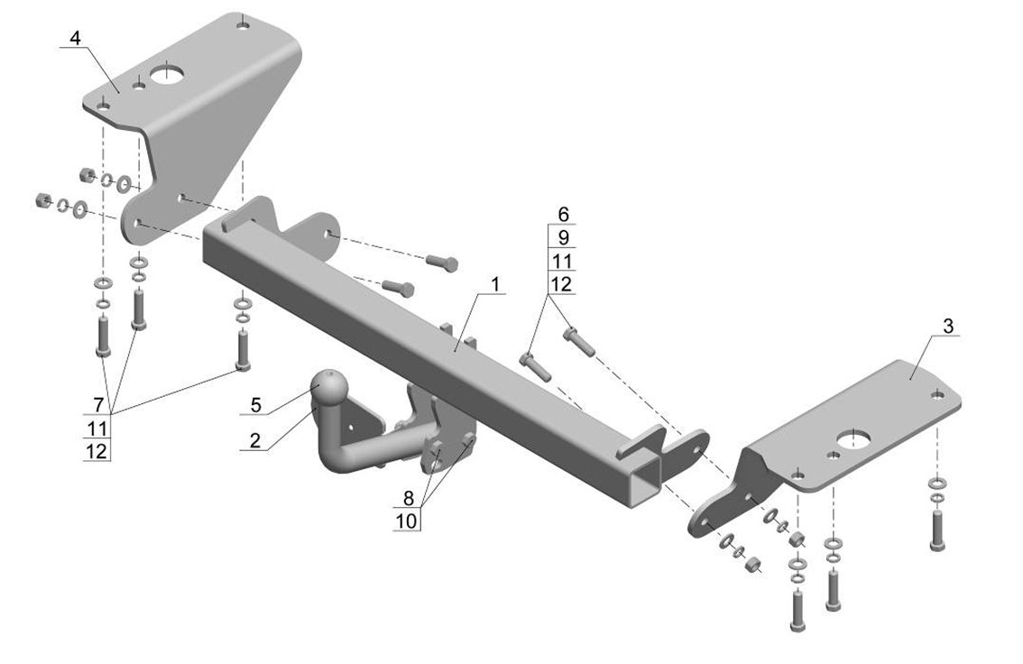 Тип шара: Условно съемный шар (на двух болтах).; Вертикальная нагрузка на шар, кг: 75.; Максимальная масса прицепа, кг: 1350.; Резать бампер: Не надо.; Паспорт и сертификат в комплекте. ВНИМАНИЕ! Без электрики.