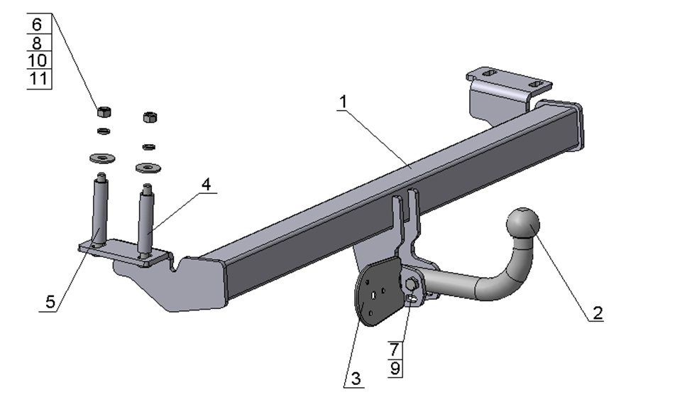 Тип шара: Условно съемный шар (на двух болтах).; Вертикальная нагрузка на шар, кг: 50.; Максимальная масса прицепа, кг: 1000.; Резать бампер: Не надо.; Паспорт и сертификат в комплекте. ВНИМАНИЕ! Без электрики.