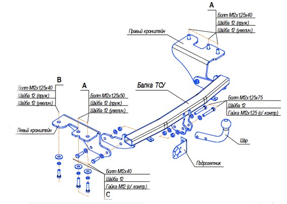 Тип шара: Условно съемный шар (на двух болтах).; Вертикальная нагрузка на шар, кг: 55.; Максимальная масса прицепа, кг: 1250.; Резать бампер: Надо.; Паспорт и сертификат в комплекте. ВНИМАНИЕ! Без электрики.