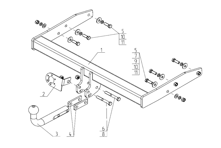 Тип шара: Условно съемный шар (на двух болтах).; Вертикальная нагрузка на шар, кг: 120.; Максимальная масса прицепа, кг: 2800.; Резать бампер: Не надо.; Паспорт и сертификат в комплекте. ВНИМАНИЕ! Без электрики.