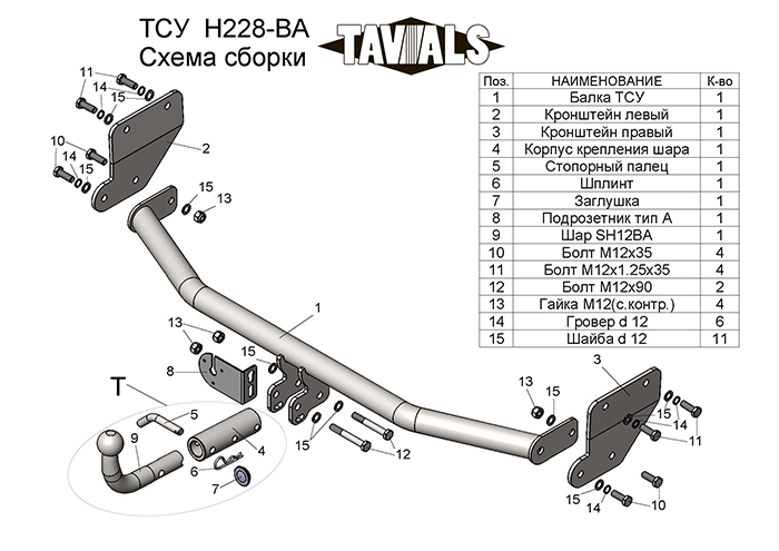 Артикул T-H228-BA (съемный шар тип BА)