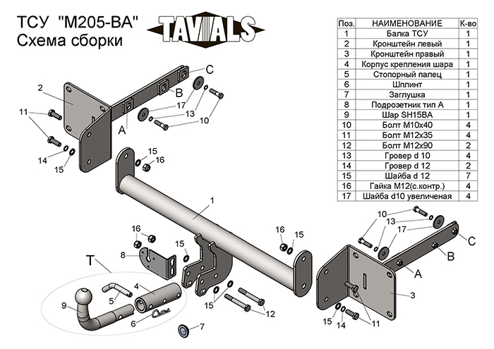 Артикул T-M205-BA (съемный шар тип BА)
