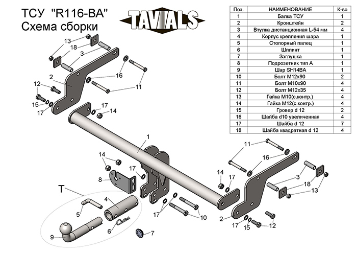 Артикул T-R116-BA (съемный шар тип BА)