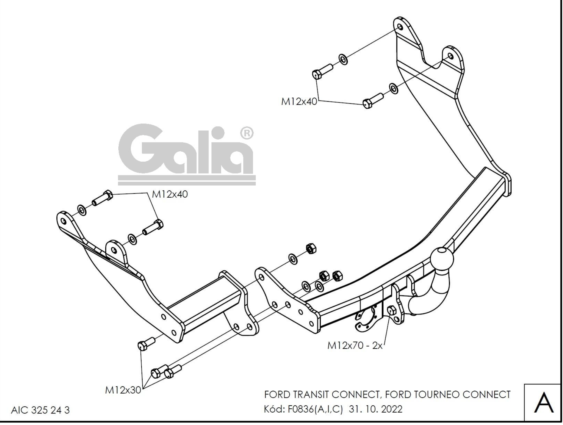 Полностью ОЦИНКОВАННЫЙ фаркоп на Ford Tourneo Connect 2002-2014, Transit Connect 2002-2014. Тип шара: C (горизонтальный съемный). Установка без снятия и выреза бампера. Нагрузки: 1200/75 кг.