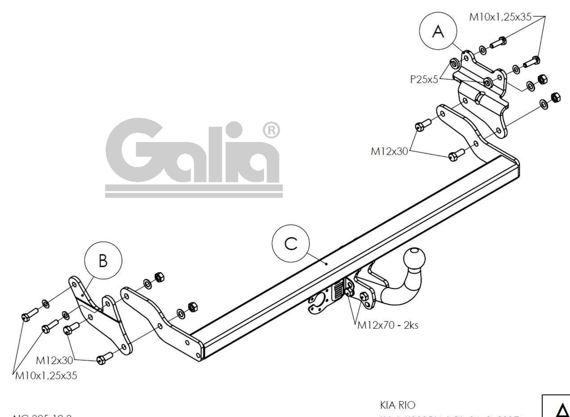 Полностью оцинкованный фаркоп на Kia Rio хетчбек (европейская версия) 2017-2021. Тип шара: A. Установка без выреза бампера. Нагрузки: 1200/80 кг, масса фаркопа 14,27 кг