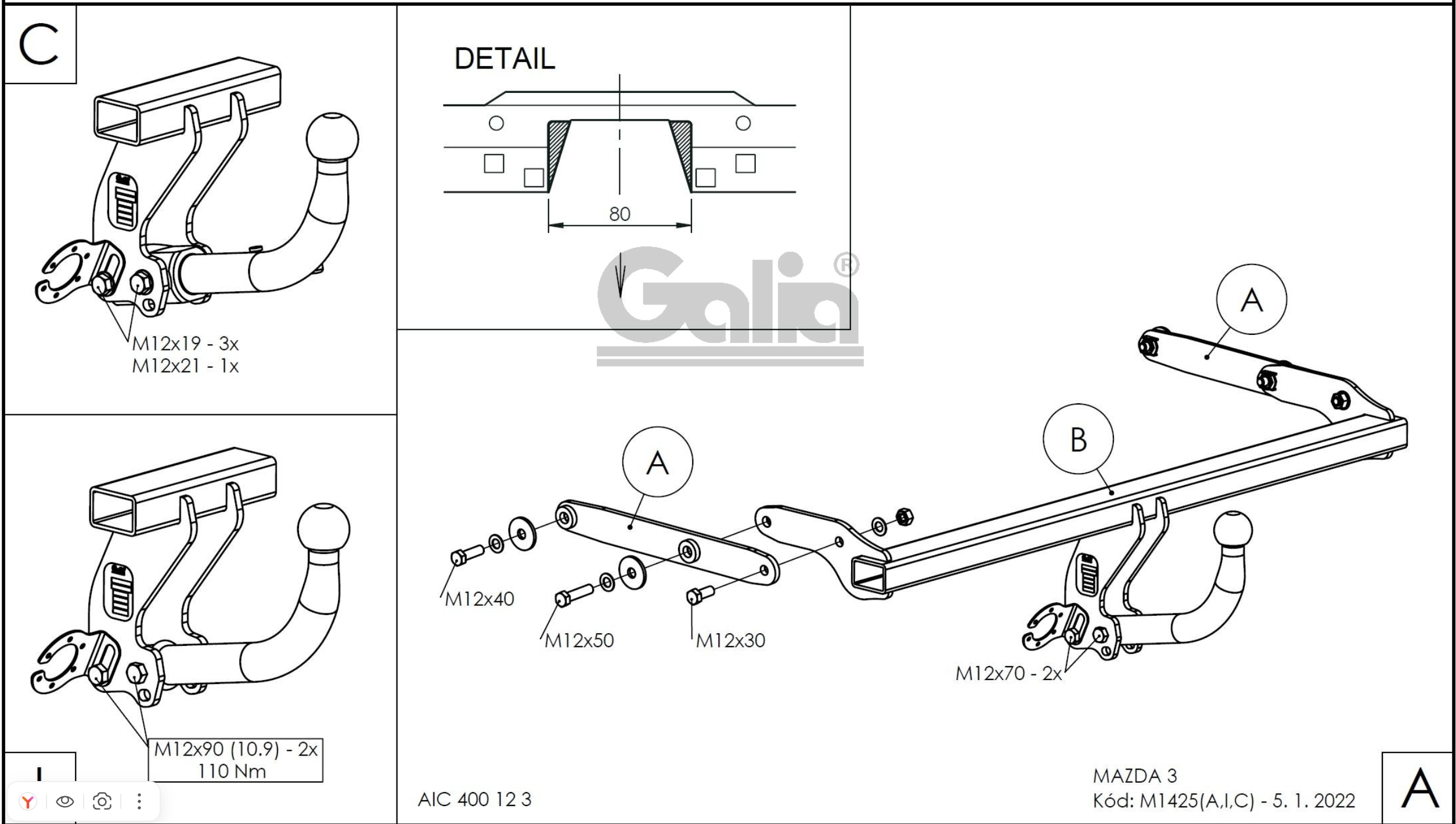 Полностью ОЦИНКОВАННЫЙ фаркоп на Mazda 3 хетчбек 2019-. Тип шара: C (горизонтальный съемный). Невидимый вырез бампера. Нагрузки: 1600/80 кг,