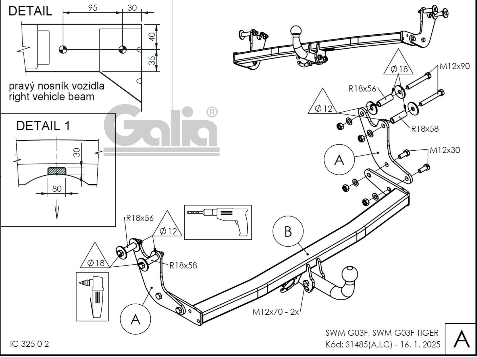 Полностью ОЦИНКОВАННЫЙ фаркоп на SWM G03F Tiger 2022-. Тип шара: A. Установка без снятия и выреза бампера. Нагрузки: 1500/50 кг.