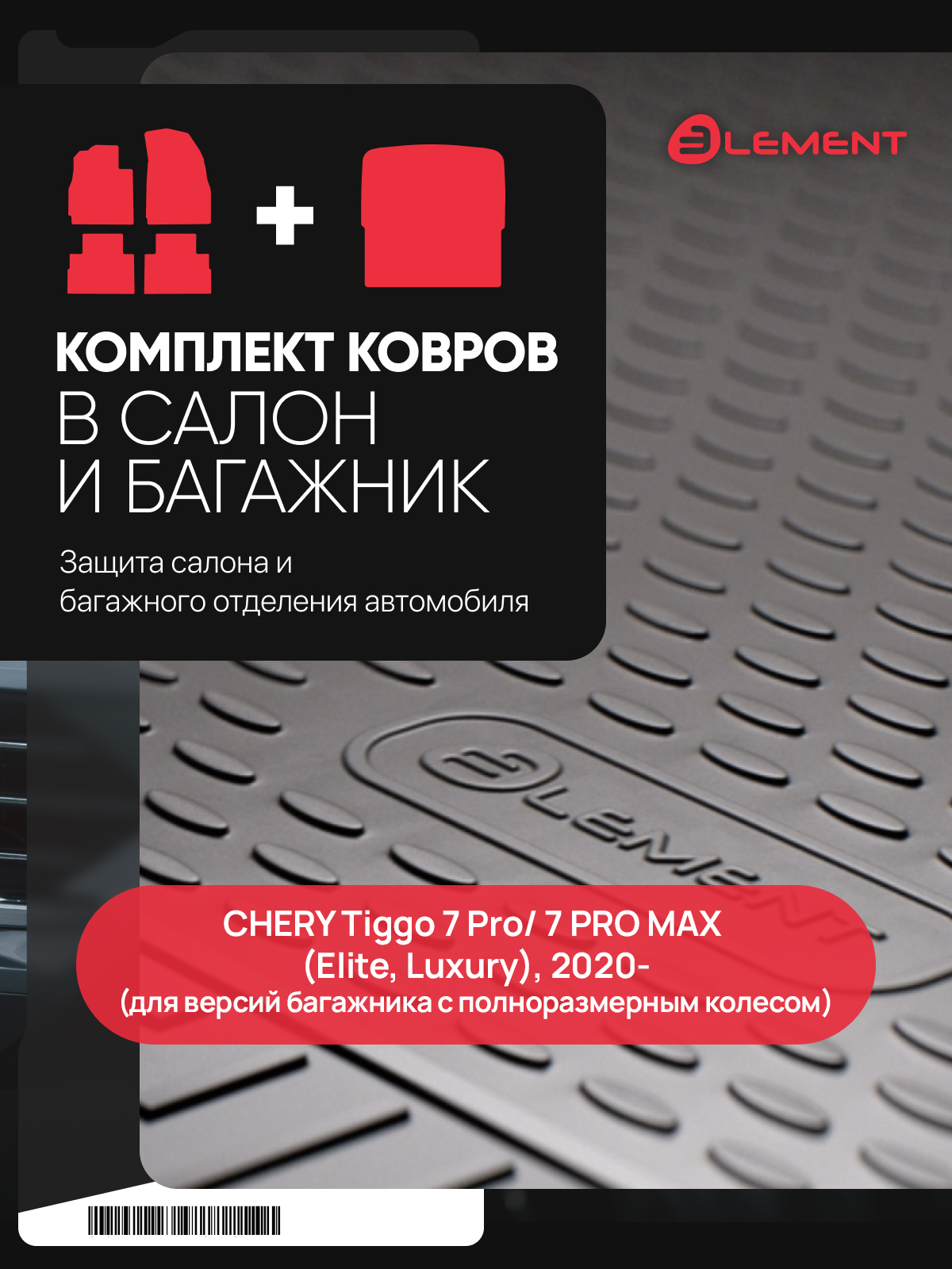 Комплект ковриков для CHERY Tiggo 7 Pro/ 7 PRO MAX (Elite, Luxury), 2020- (салон+багажник), (для версий багажника с полноразмерным колесом), кросс, 5