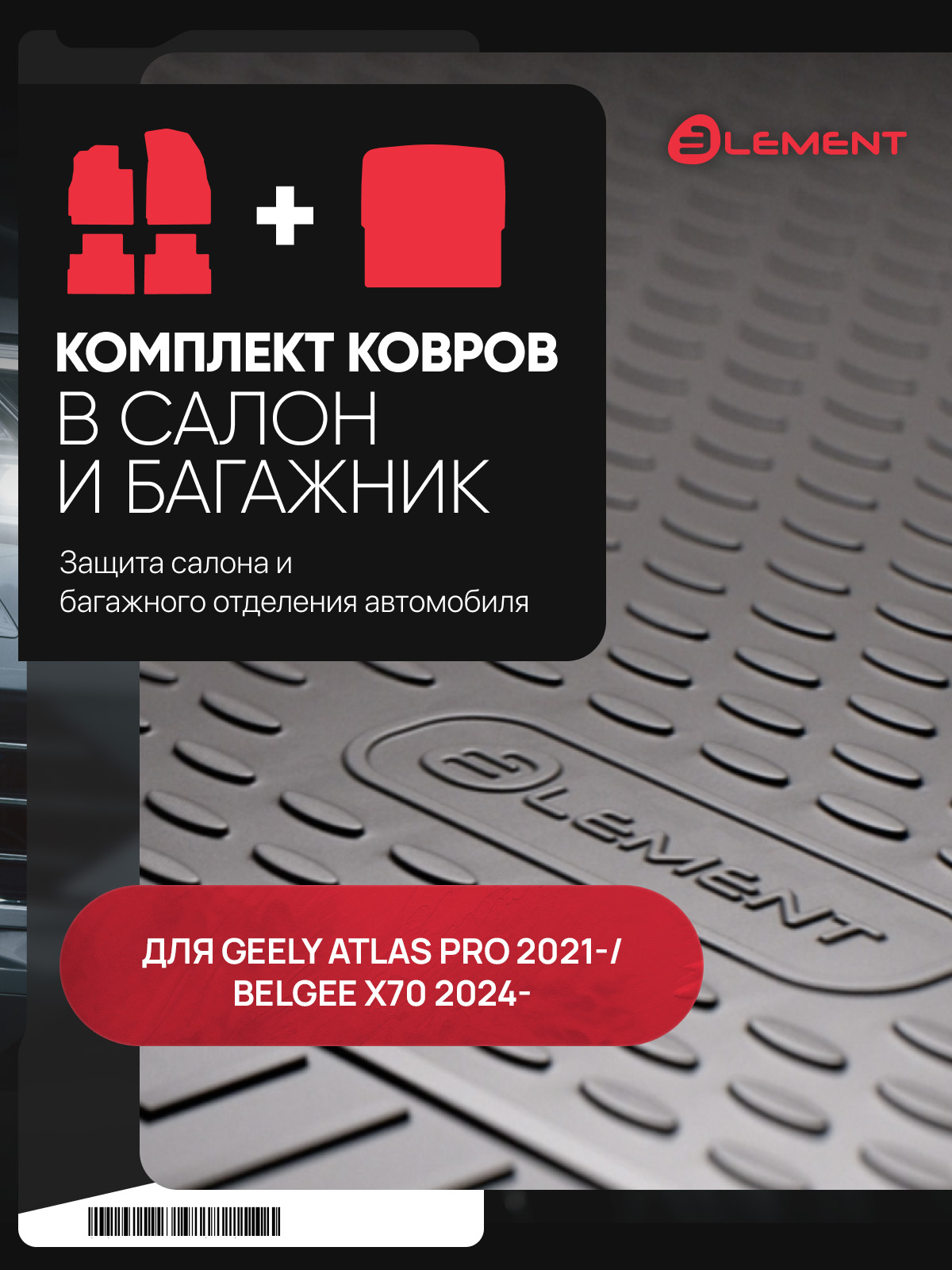 Комплект ковриков для GEELY Atlas Pro (I (NL-3)) 2021-/Belgee X70 2024- кросс., (салон + багажник), 5 шт. (полиуретан) / Джили Атлас про
