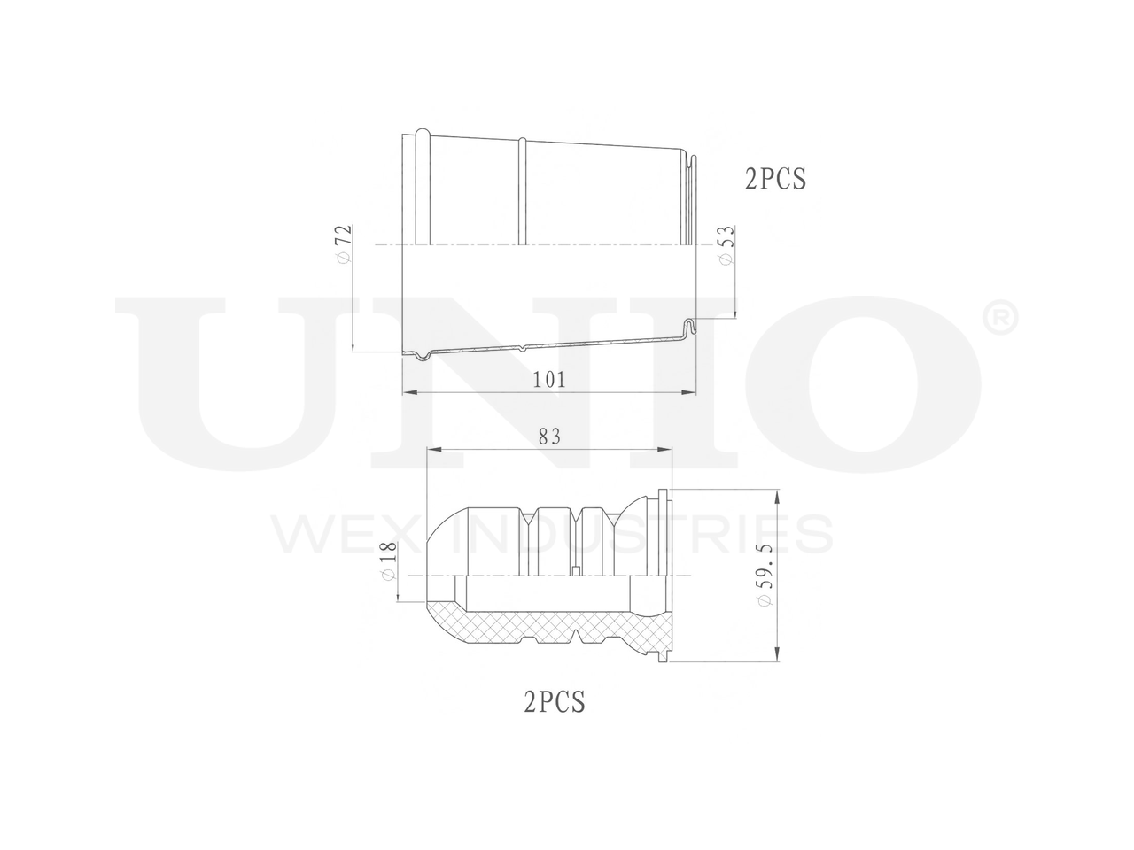 Артикул товара - DUC-50077, Сторона установки:Передний мост, Внутренний диаметр 1 [мм]:53, Внутренний диаметр 2 [мм]:72, Высота [мм]:101, Материал пыльника:ТПВ (термопластичный вулканизат), Высота отбойника [мм]:83, Материал:Полиуретан, EAN:4657815041306, EAN:4657815041306, Тип упаковки:пакет, Длина упаковки [мм]:200, Ширина упаковки [мм]:300, Высота упаковки [мм]:50, Вес нетто [кг]:0,3, Вес брутто [кг]:0,3