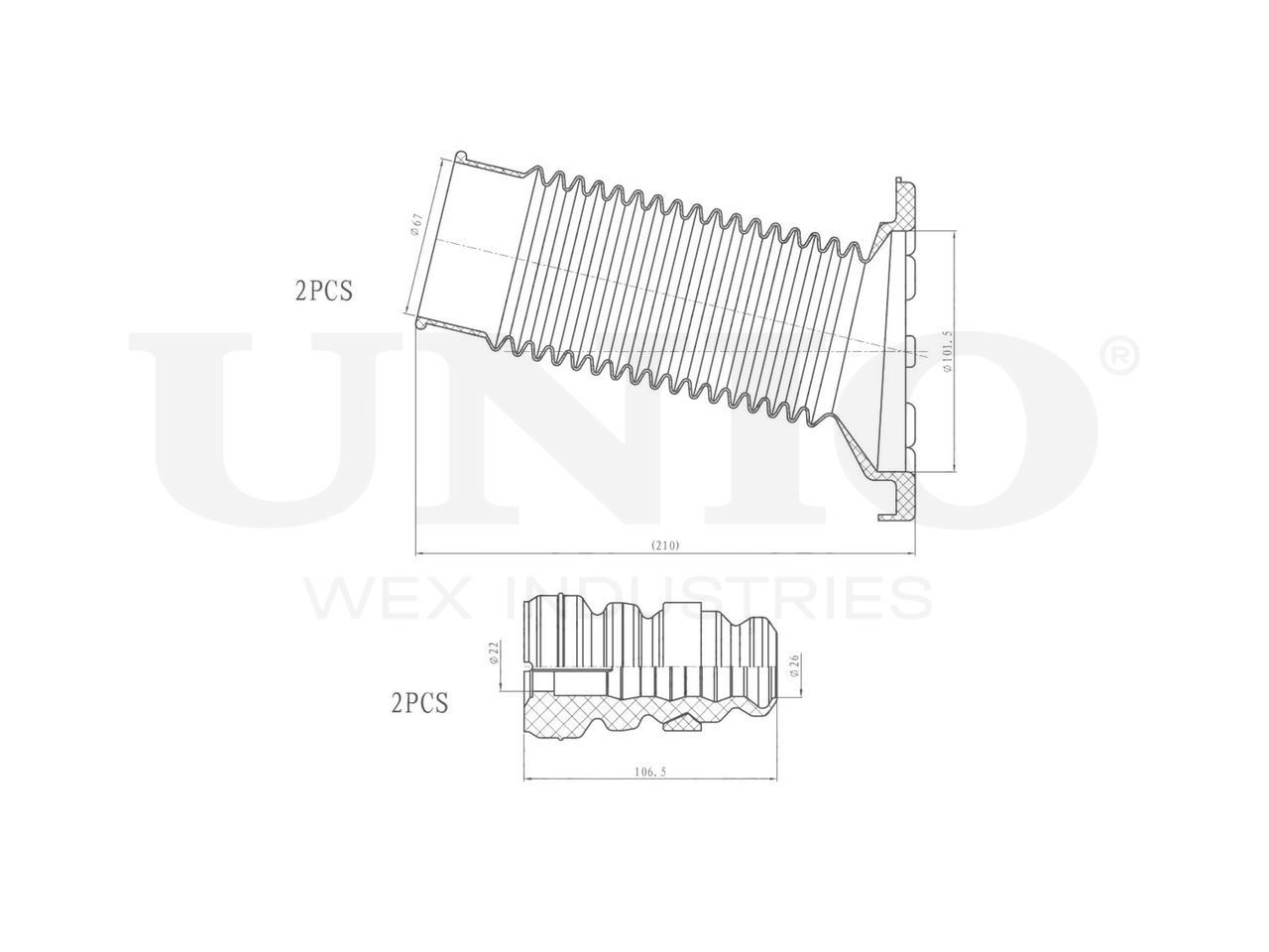 Артикул товара - DUC-50097, Сторона установки:Передний мост, Внутренний диаметр 1 [мм]:67, Внутренний диаметр 2 [мм]:101.5, Высота [мм]:210, Материал пыльника:Резина, Высота отбойника [мм]:106.5, Материал:Полиуретан, EAN:4657815042242, EAN:4657815042242, Тип упаковки:пакет, Длина упаковки [мм]:360, Ширина упаковки [мм]:500, Высота упаковки [мм]:50, Вес нетто [кг]:0,57, Вес брутто [кг]:0,57