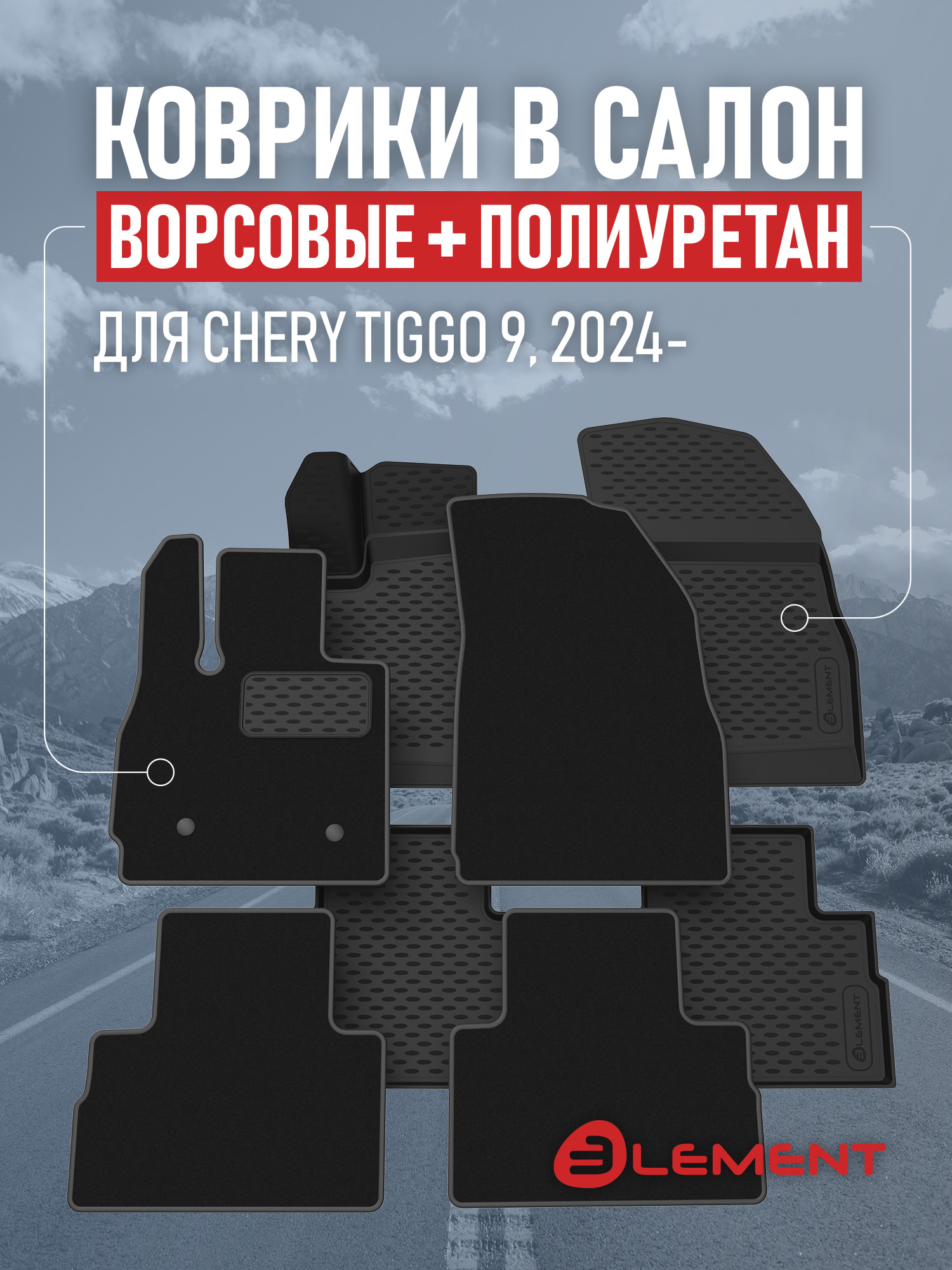 Коврики в салон для CHERY Tiggo 9 2024-, (комплект полиуретан+ворсовые), 2 комплекта. / Черри Тигго 9