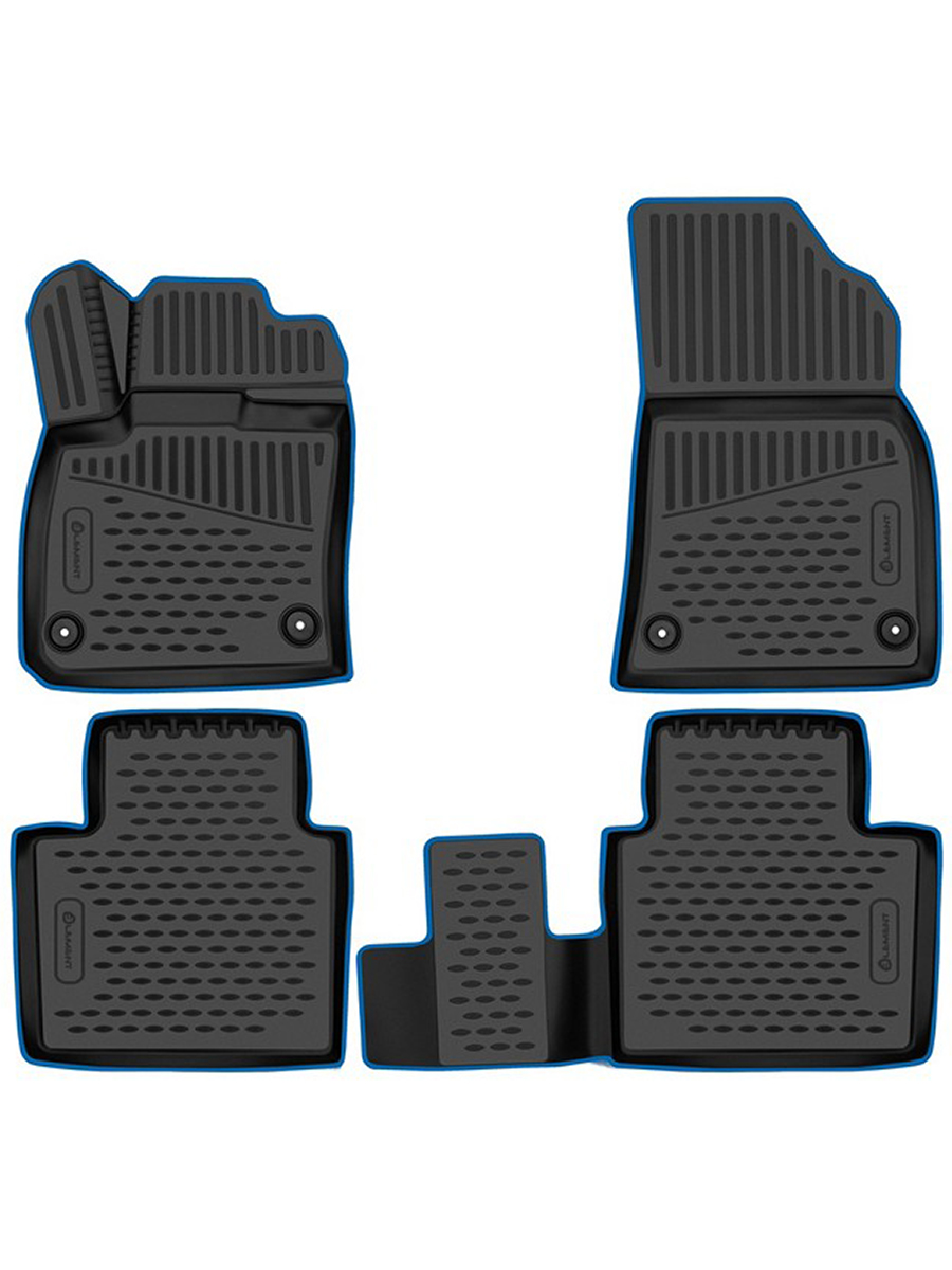 Коврики 3D в салон подходят для GEELY Monjaro (I) 2022-, Внедорожник 5 дв., 4шт. (синий кант, полиуретан) / Джили Монжаро