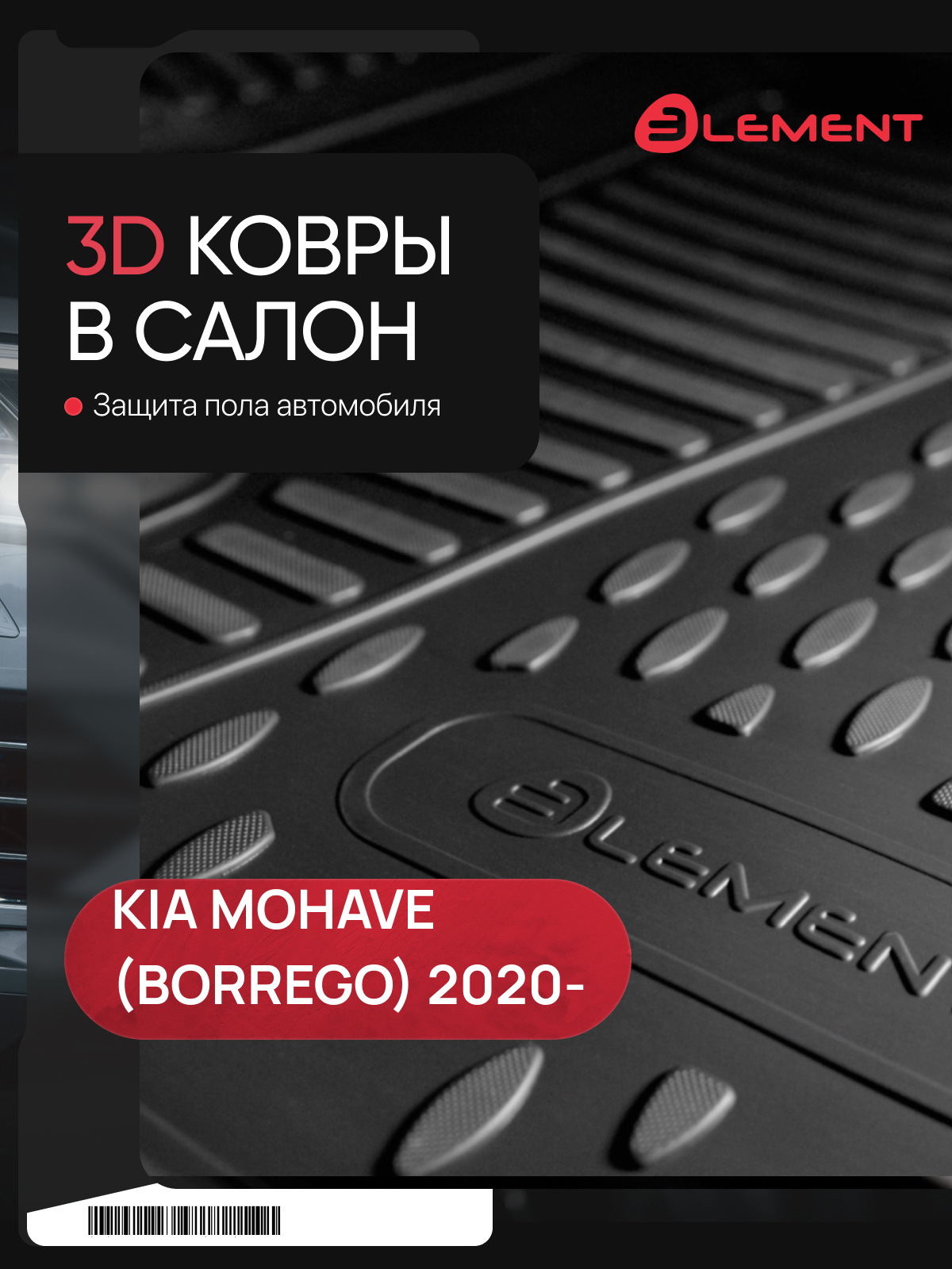 Коврики в салон подходят для KIA Mohave 2020- (с напольной педалью), 5 шт. (полиуретан) / Киа Мохав