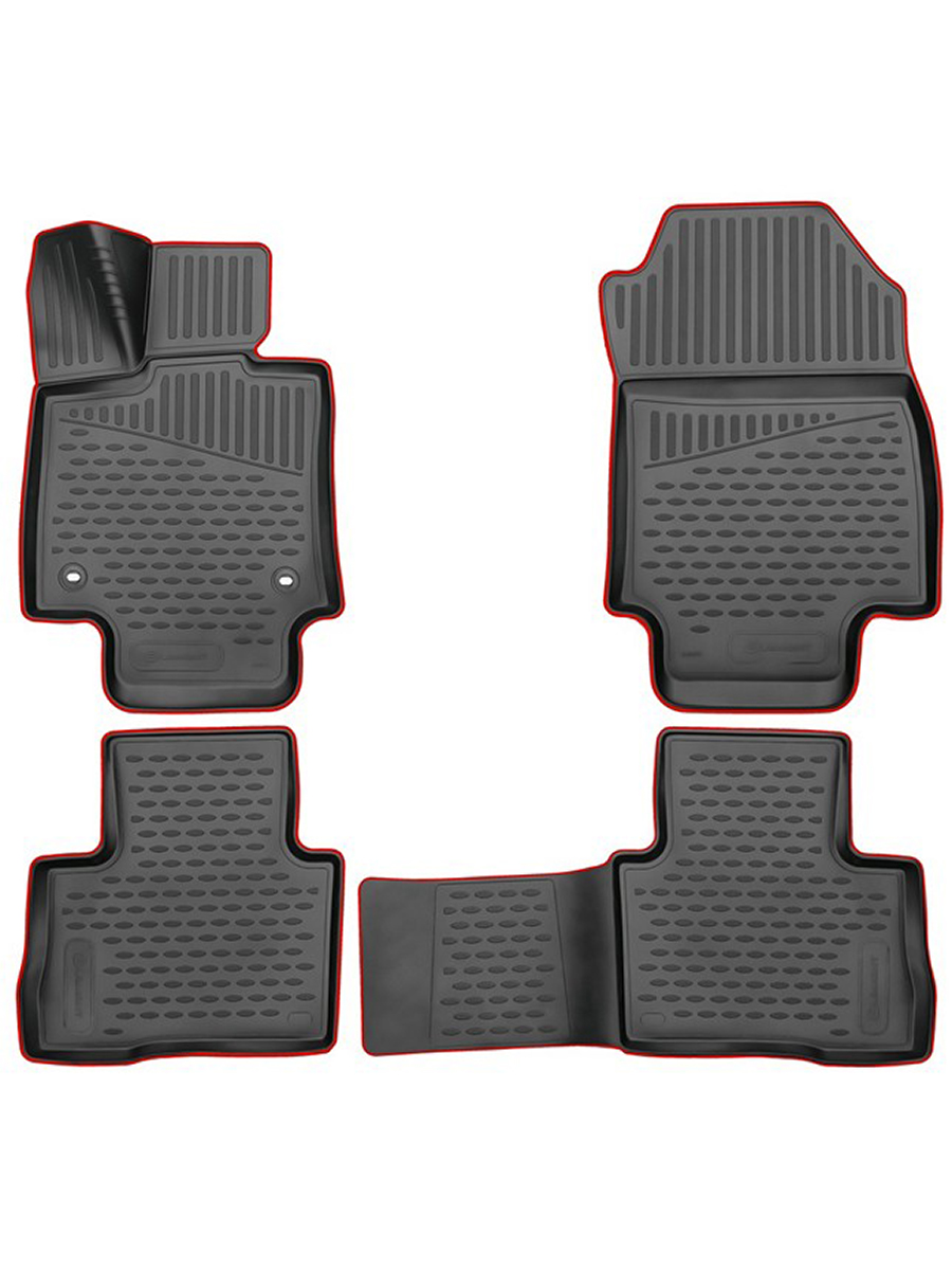 Коврики 3D в салон подходят для TOYOTA RAV4, 2019- кроссовер, 4шт. (красный кант, полиуретан) / Тойота Рав 4