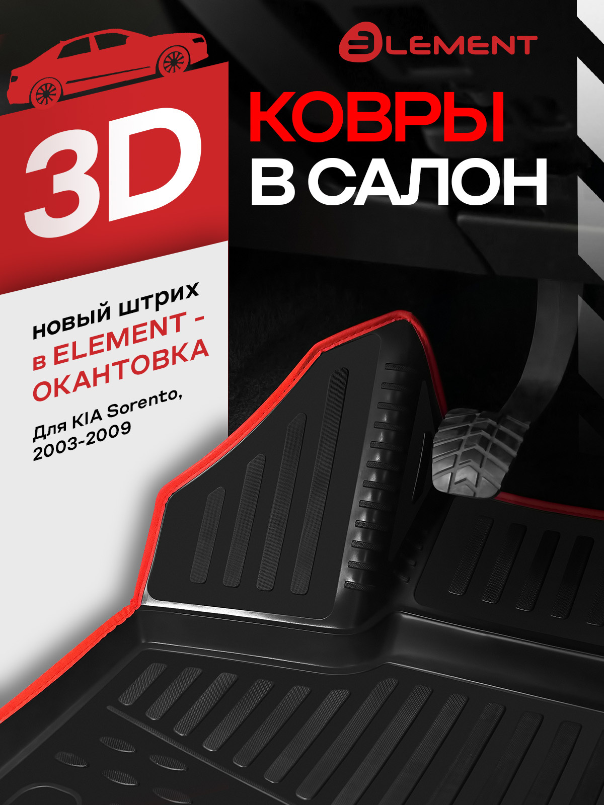 Коврики в салон KIA Sorento 2003-2009, 4 шт. (красный кант, полиуретан) / Киа Соренто
