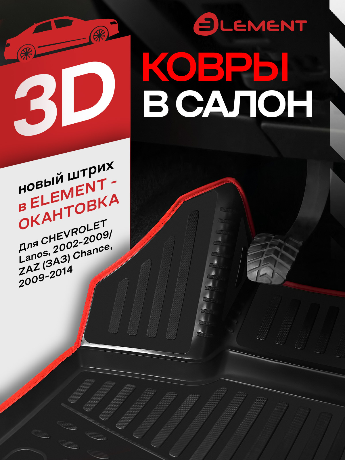 Коврики в салон подходят для CHEVROLET Lanos, 2002-2009 (красный кант, полиуретан) / Шевроле Ланос