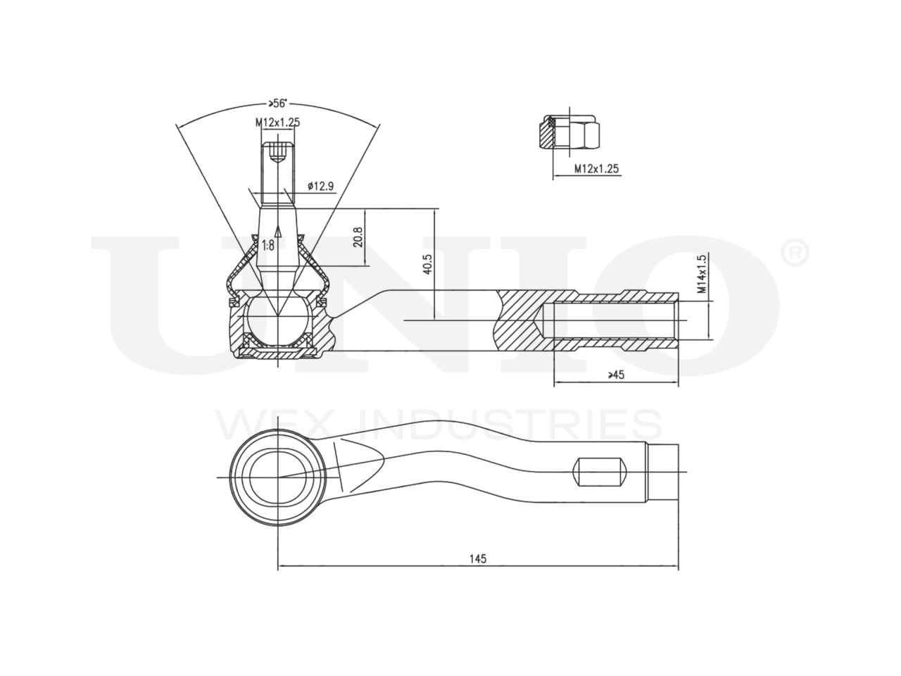 Артикул товара - SSP-10041, Парные номера артикулов:SSP-10042, Сторона установки:Передний мост слева, Внутренний диаметр 1 [мм]:12.9, Внутренний диаметр 2 [мм]:15.5, Длина [мм]:145, Присоединительная винтовая резьба:M12x1,25, Размер конуса [мм]:12.9, EAN:4657808262299, EAN:4657808262299, Тип упаковки:коробка, Длина упаковки [мм]:170, Ширина упаковки [мм]:120, Высота упаковки [мм]:60, Вес нетто [кг]:0,62, Вес брутто [кг]:0,69